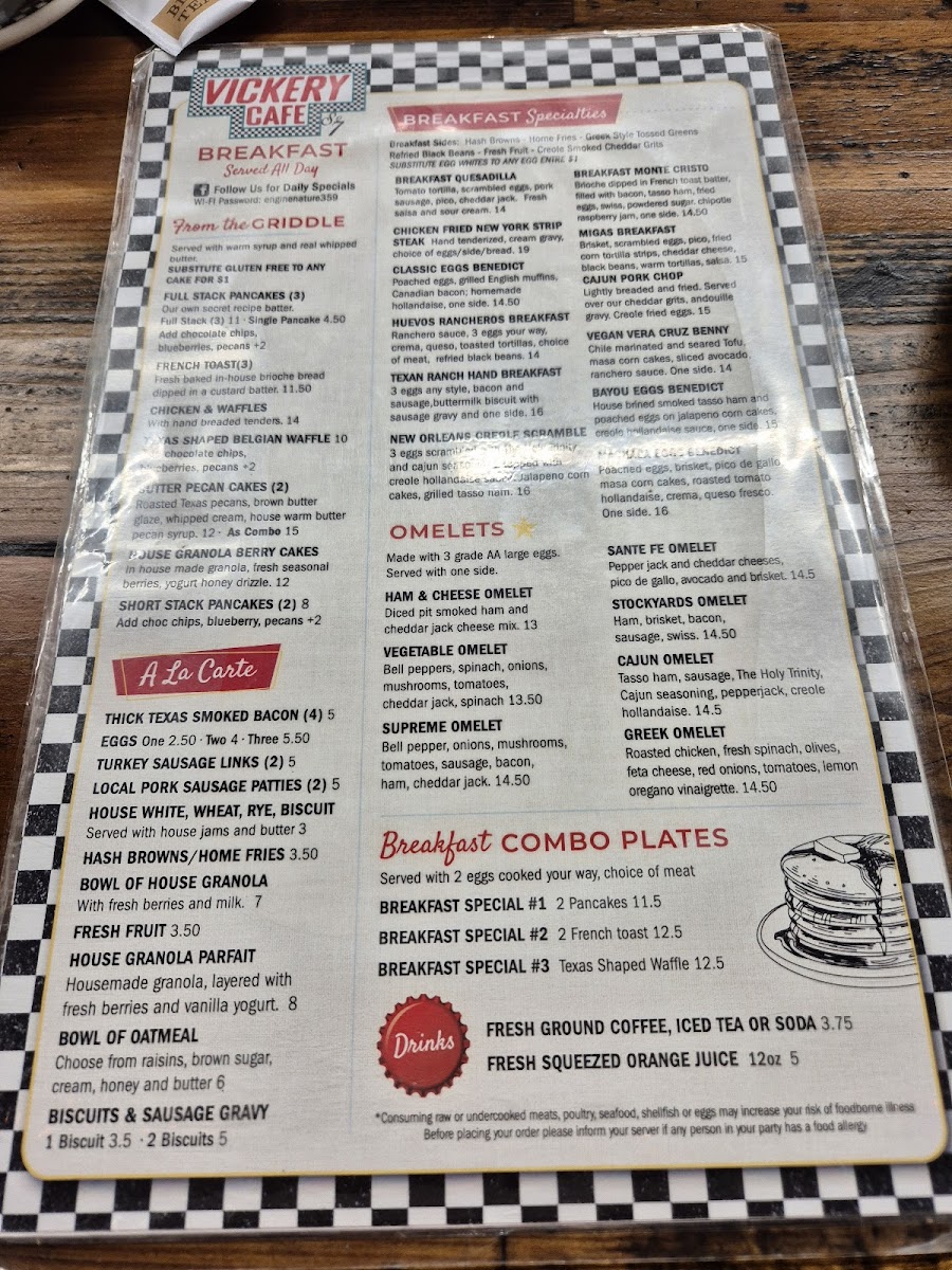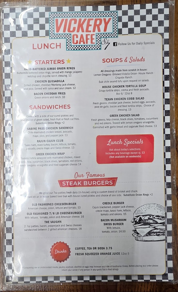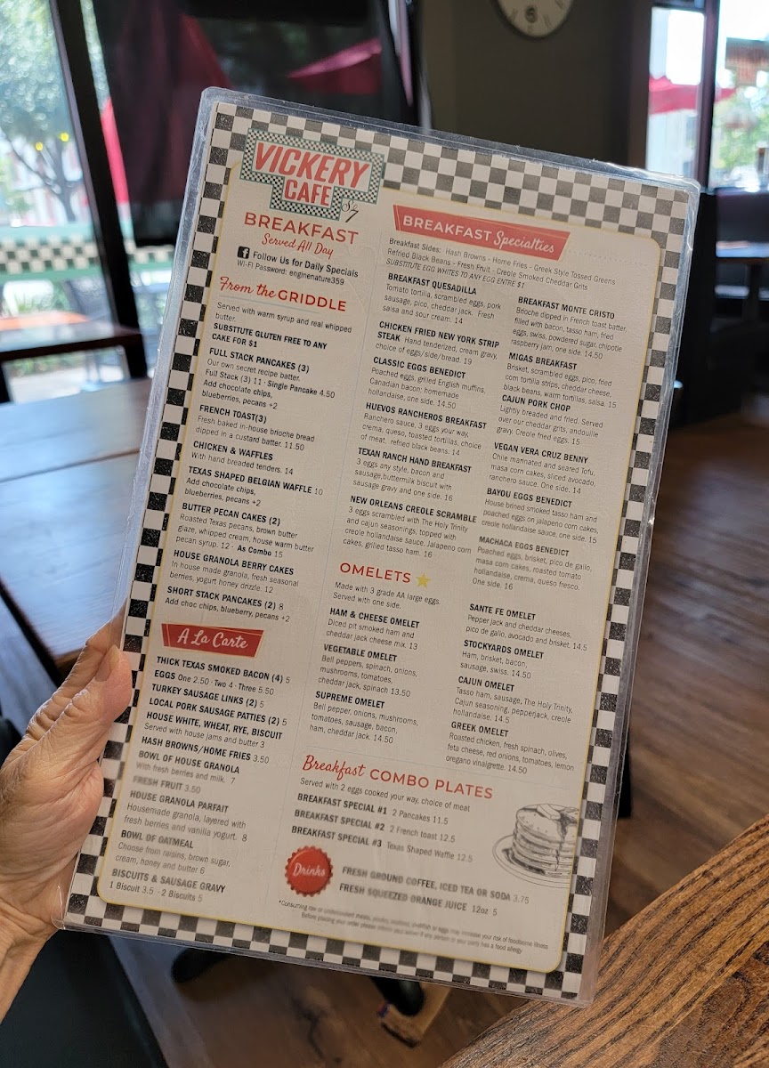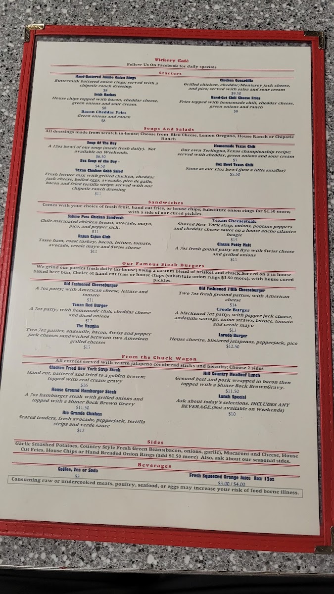 If you're in the mood for a cozy spot with delicious comfort food, look no further than Vickery Cafe. Nestled at 2421 W 7th St Ste #109, Fort Worth, TX, this cafe offers a menu that perfectly blends homestyle dishes with a fresh, modern twist. Whether you’re stopping by for a quick bite or settling in for a leisurely meal, the Vickery Cafe Menu has something to satisfy every craving. From mouthwatering breakfast options like fluffy pancakes and savory omelets to hearty lunch plates, you’ll find it all here. Each dish is made with care, using the finest ingredients, ensuring you get a taste of something truly special. The inviting atmosphere and friendly service make it the perfect place to enjoy a great meal with friends or family. The variety on the menu also means you can explore something new every time you visit!